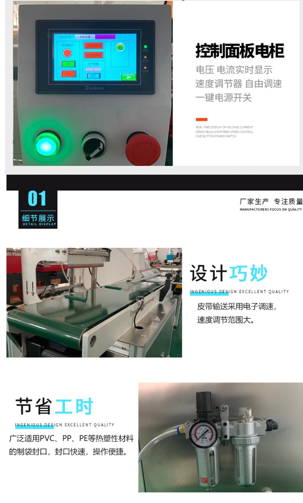 - 醫(yī)藥行業(yè):在藥瓶、藥袋的包裝封口方面應用廣泛,尤其是小型的藥瓶和藥袋,立式結構可以節(jié)省空間,便于在較小的生產場地進行操作,且能實現快速準確的封口。