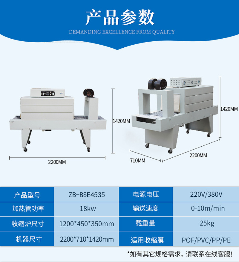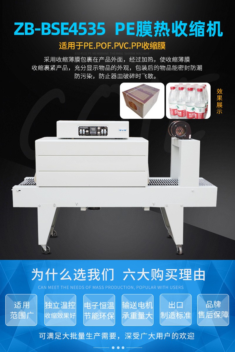 PE膜熱收縮機熱風循環(huán)收縮膜包裝機BSE-4535